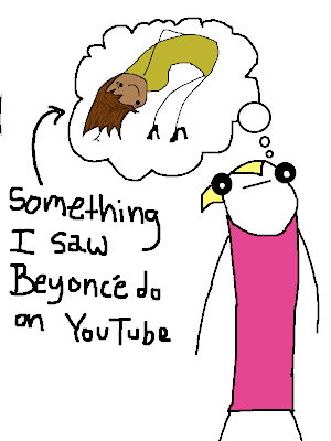 I begin to wonder why I would ever assume that I was capable of making my body do what I had pictured it doing. My coordination is questionable even while performing simple tasks like walking or putting food in my mouth. In college, I took a dance class and at the end of the year, the only thing my teacher wrote on my evaluation was "Allie tries hard." Nothing I have ever done would indicate that I have the potential to dance like Beyoncé. But I didn't consider that.