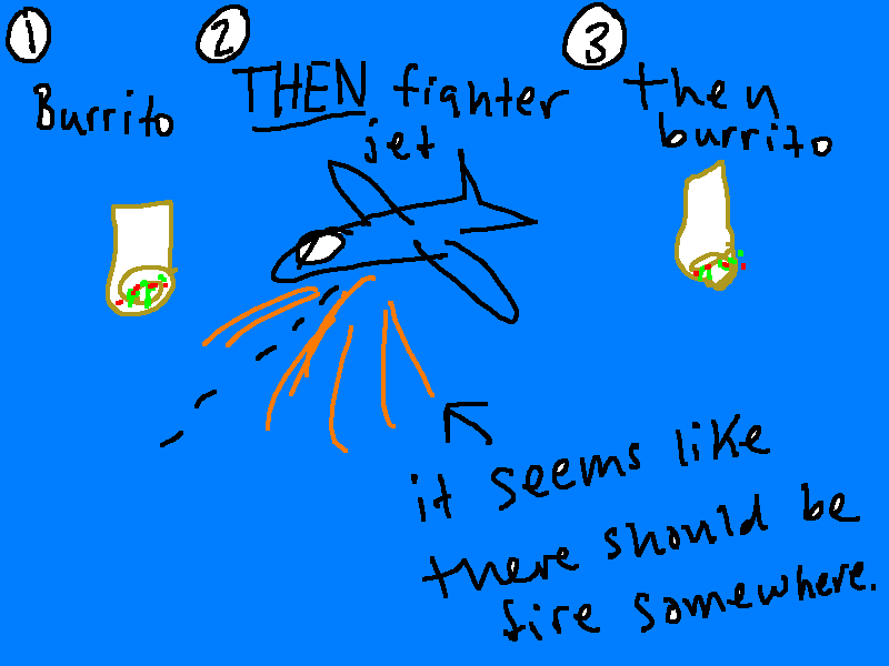 Basically, a burrito is pretty awesome.  And then you get a fighter gjet and the burrito isn't so awesome anymore because burritos can't fly in the air and kill things from a great distance.